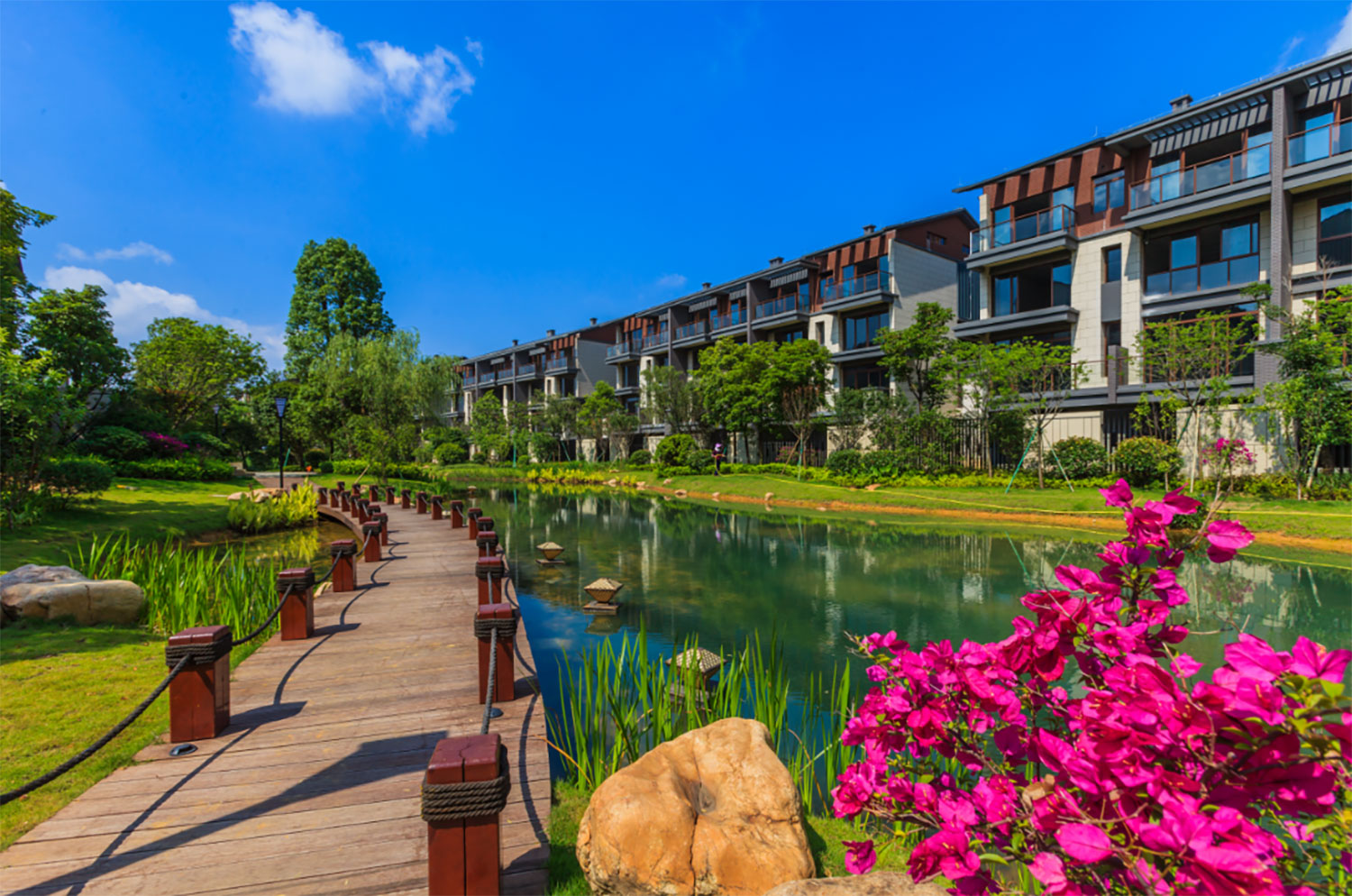 荣和林溪府作为荣和集团进驻桂林首个项目,定位为55万㎡山水度假大城,综合容积率仅1.2,打造桂林市最具代表性的标杆高端项目。项目位于琴潭路东西两侧,总体由电梯洋房、湖山叠院、酒店公寓、商业街区4大产品系列组成。依托3300亩荷塘湿地公园、荷韵生态公园以及周边的自然山水资源打造琴潭版块独具特色的低密度山水豪宅项目。同时出资8000万建榕湖小学琴潭分校,配套博雅双语幼儿园,为林溪府的业主子女的教育保驾护航,优先保障、有效解决了业主子女的入学问题。