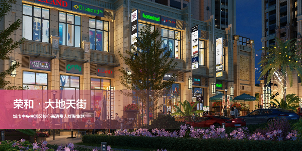 荣和大地一公里中心水系旁滨水风情商业街,与商业中心遥相呼应,各种水景与商业交相辉映,在购物的同时亦享受美景,配合欧式花钟、门廊、柱式、雨蓬等元素,营造澳洲风情的情景化商业氛围。商业街内设酒吧、咖啡吧、甜品西点店、美容院、花店、超市、中西餐、名品店等,不仅为荣和大地的业主提供生活所需,更成为周边住区的消费体验商业中心。